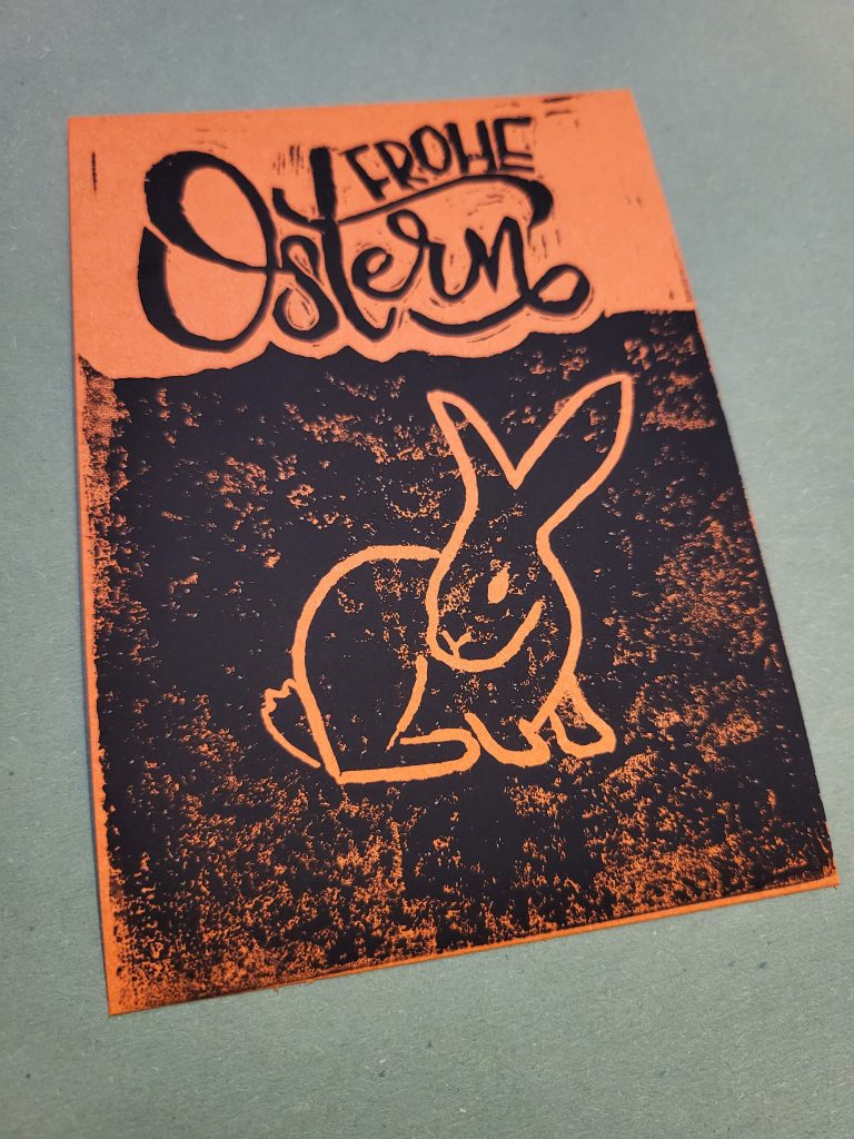 Selbsterstellter Linolschnitt – gedruckt ein schöner Ostergruß: